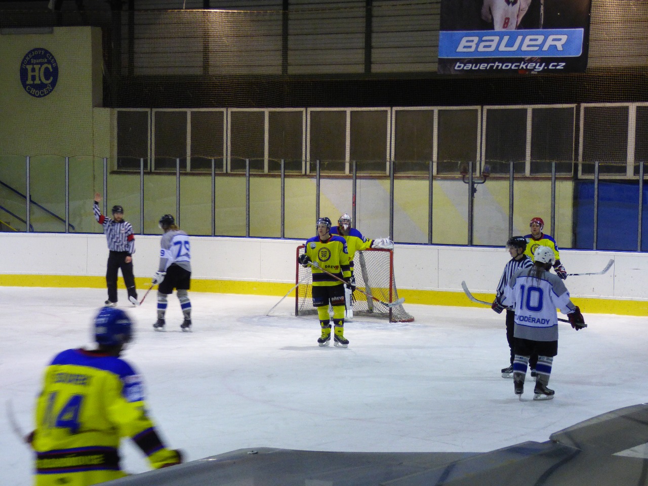 Do druhé části zápasu mohli tedy Voděrady nastoupit v klidu, neboť rozdíl čtyř branek jim to umožňoval. I díky tomu domácí působili dojmem, že vědí, že už nemusí tolik bruslit. Hosté pak měli častější příležitost dohrávat souboje. Naštěstí ani to jim nepomohlo ke snížení skóre. Ba naopak, tým hostů překonal jejich brankáře ještě dvakrát. Před poslední třetinou bylo tedy skóre nadupaných 7:1 pro tým Voděrad.